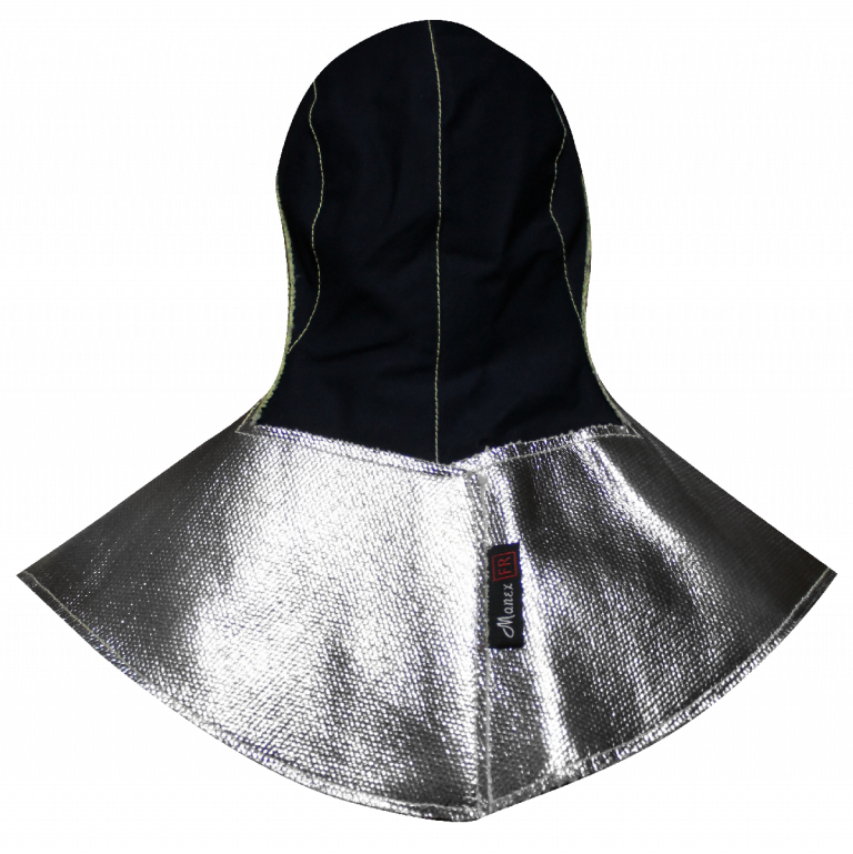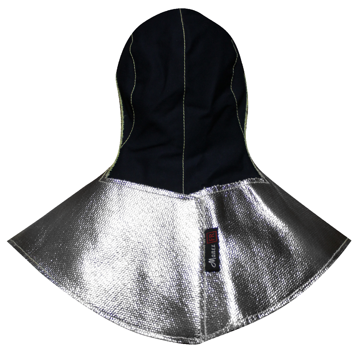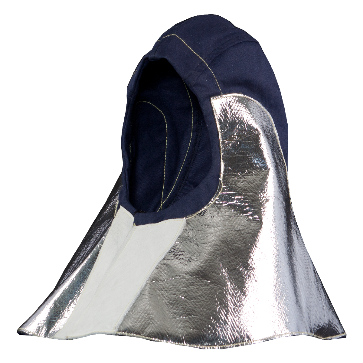 Capuchón sangrador en tela retardante a la llama con refuerzo aluminizado. Brinda protección contra el calor radiante, chispas y los peligros de salpicaduras de metal fundido.