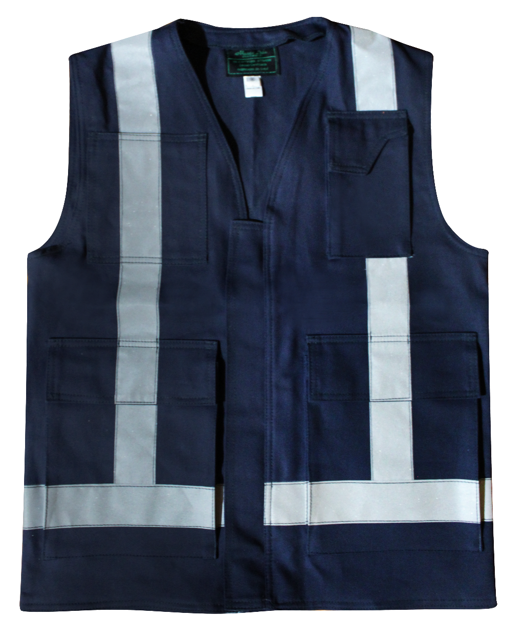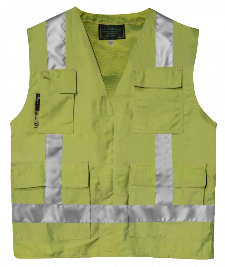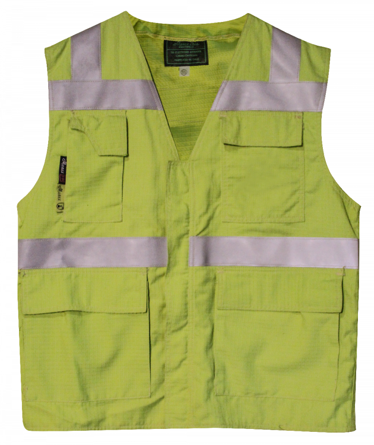 Chaleco Geólogo Antiflama. Diseñado para ser utilizado en faenas donde se requiera protección contra el fuego y salpicaduras de metal fundido. Ofrecer suficiente visualización a los transeúntes de los vehículos que se desplacen por el área.