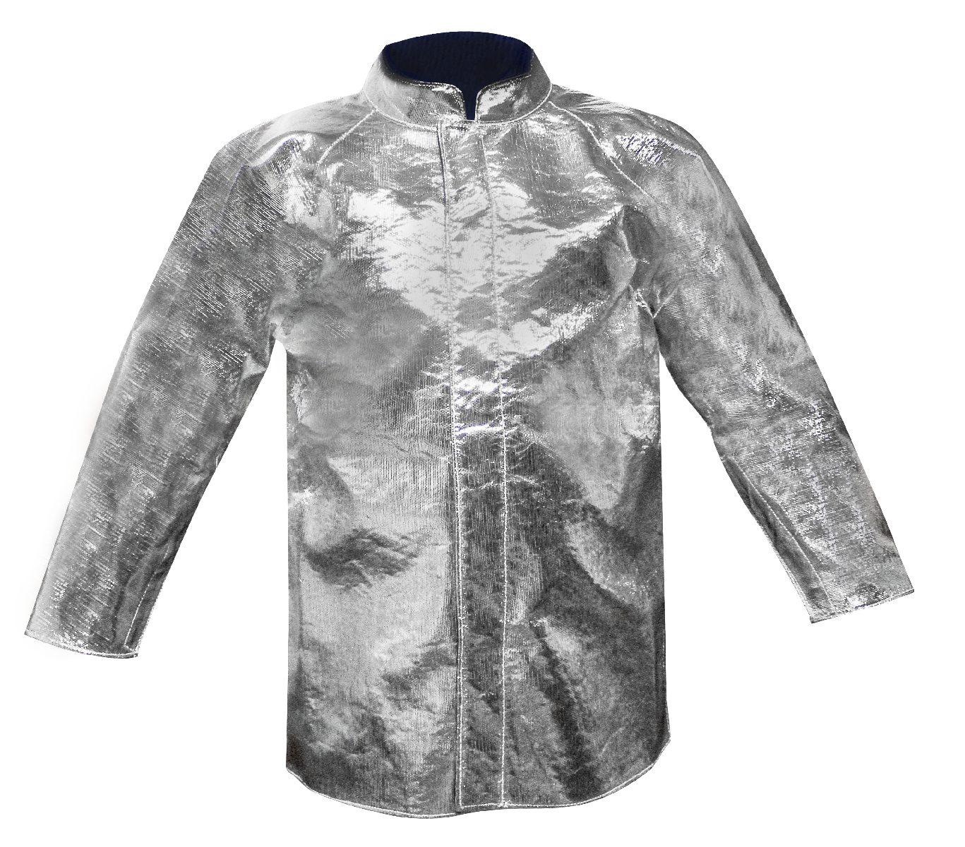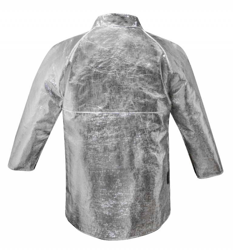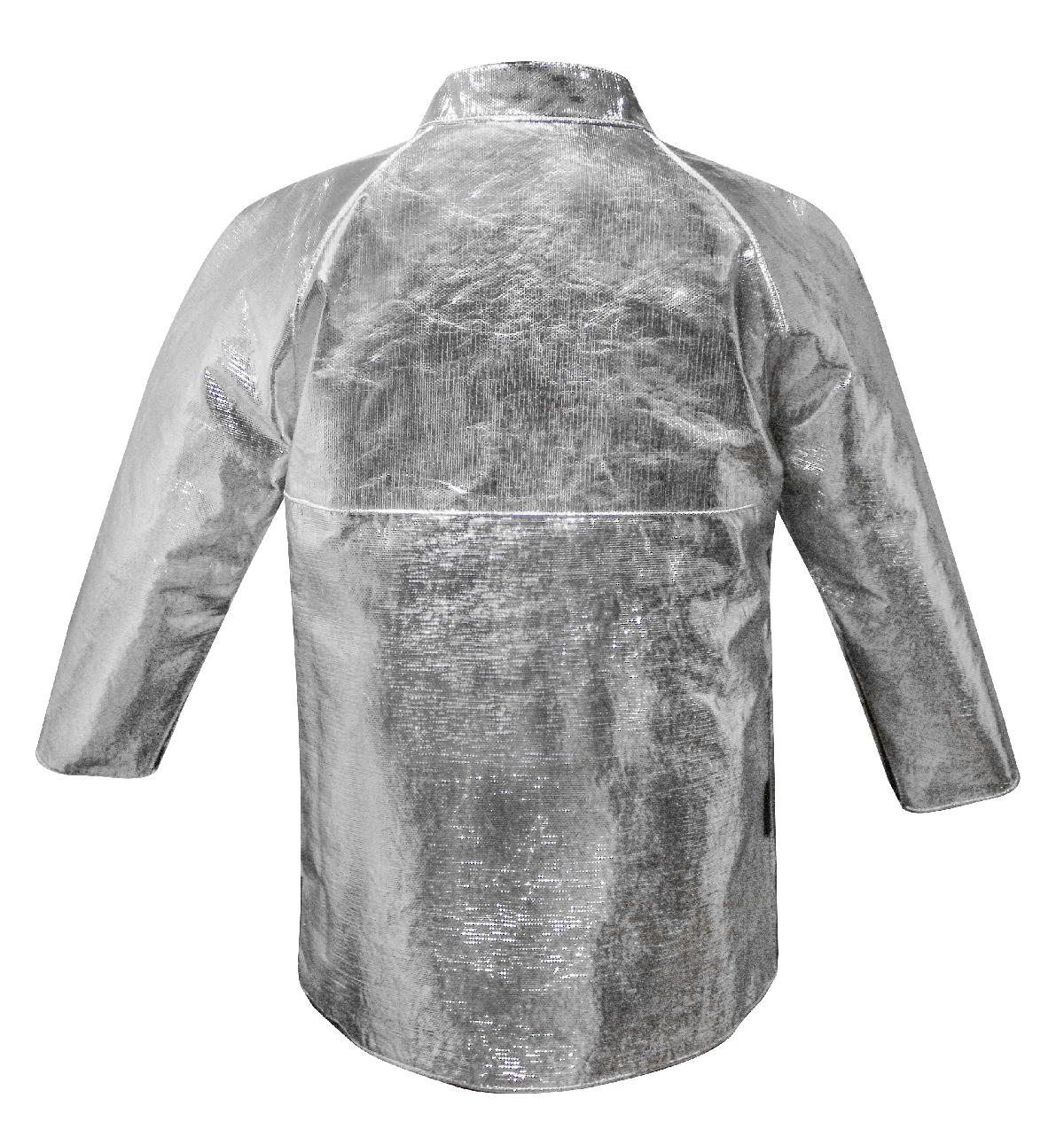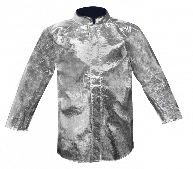 Chaqueta en Tela Aluminizada de aproximación contra altas temperaturas. Brinda protección contra el calor radiante, chispas y los peligros de salpicaduras de metal fundido.