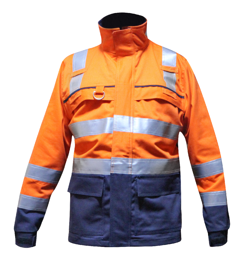 Chaqueta Bicolor Antiflama. Diseñado para ser utilizado en faenas donde se requiera protección contra el fuego y  salpicaduras de metal fundido.