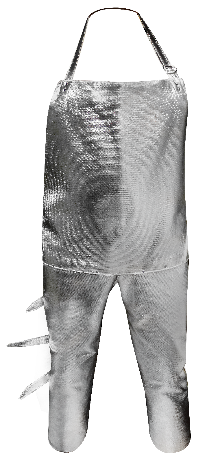 Delantal tipo Coleto con pierneras en Tela Aluminizada de aproximación contra altas temperaturas. Brinda protección contra el calor radiante, chispas y los peligros de salpicaduras de metal fundido.
