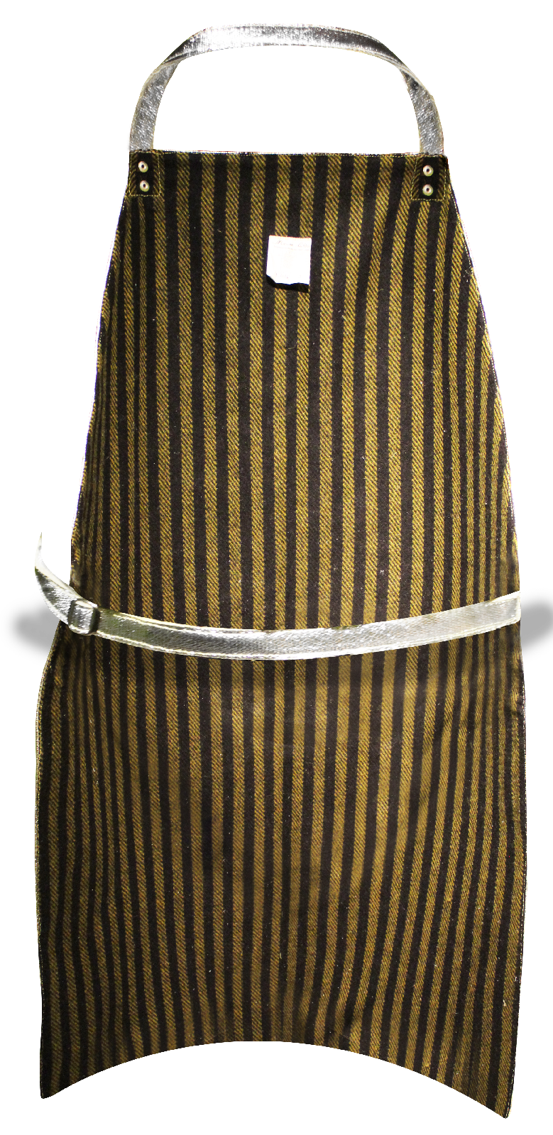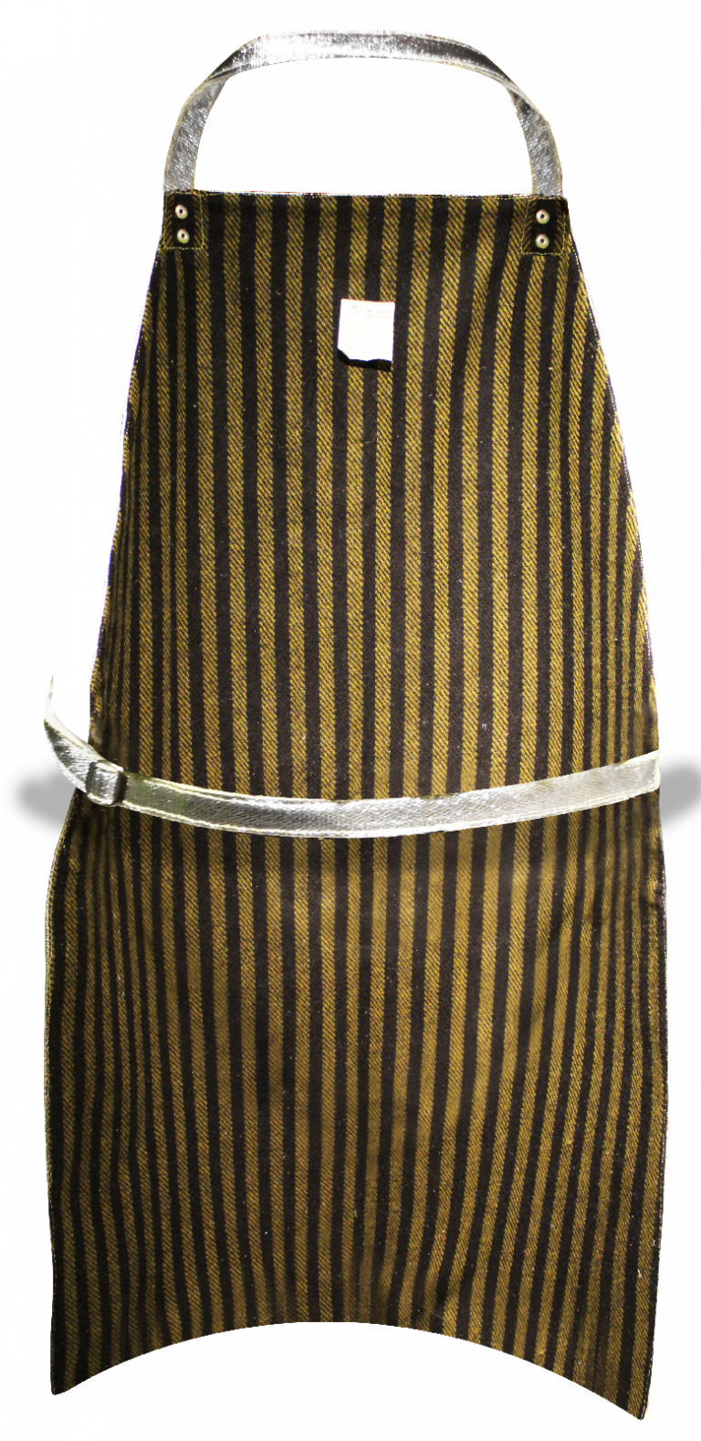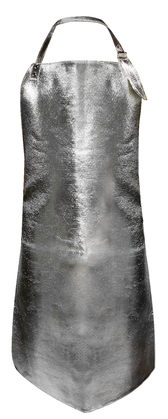 Delantal tipo Coleto en Tela Aluminizada de aproximación contra altas temperaturas. Brinda protección contra el calor radiante, chispas y los peligros de salpicaduras de metal fundido.