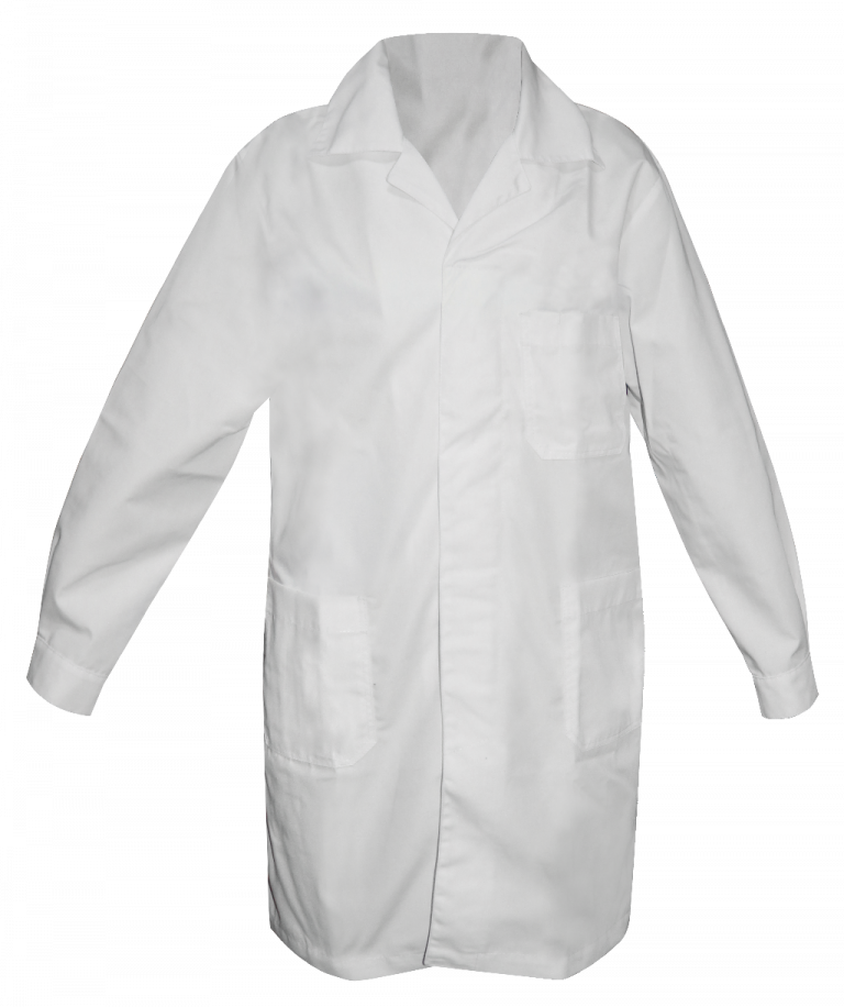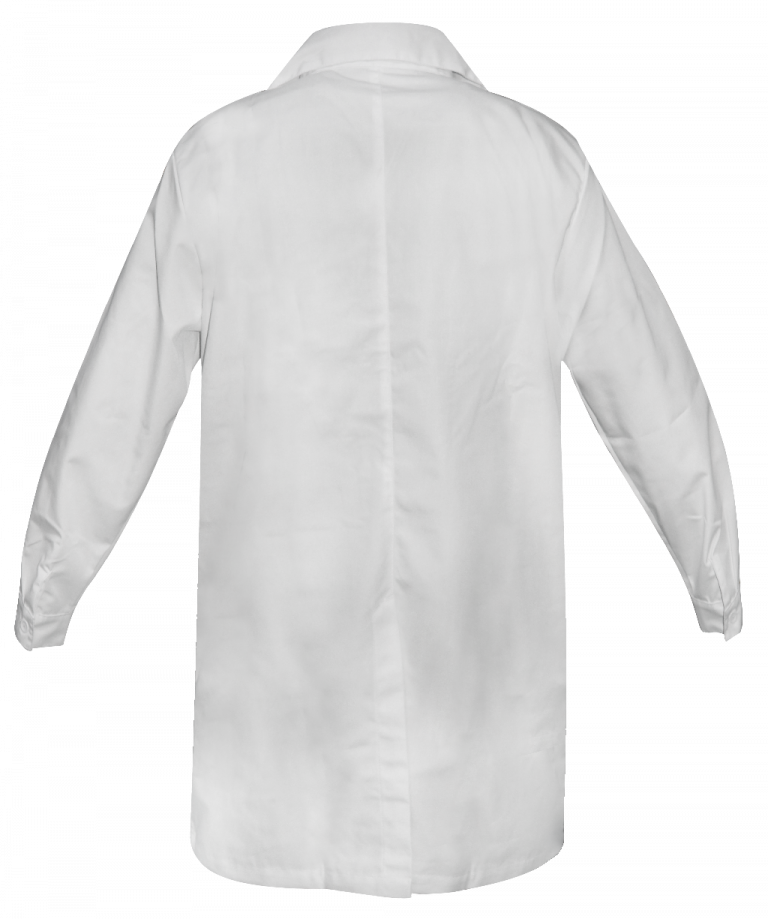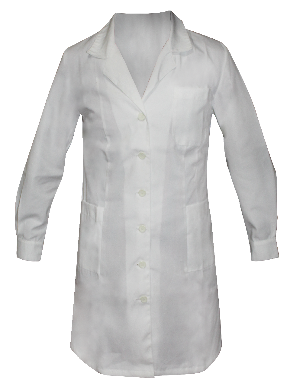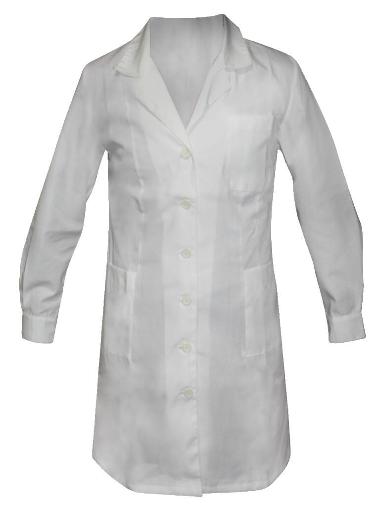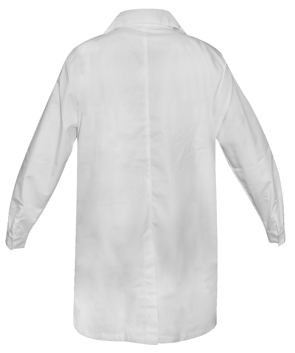 Delantal o Cotona de color blanca antiácida. Esta diseñada para su uso diario en un ambiente donde exista riesgos de pequeñas salpicaduras y de neblina ácidos o en un laboratorio químico.