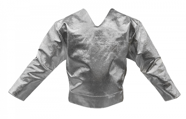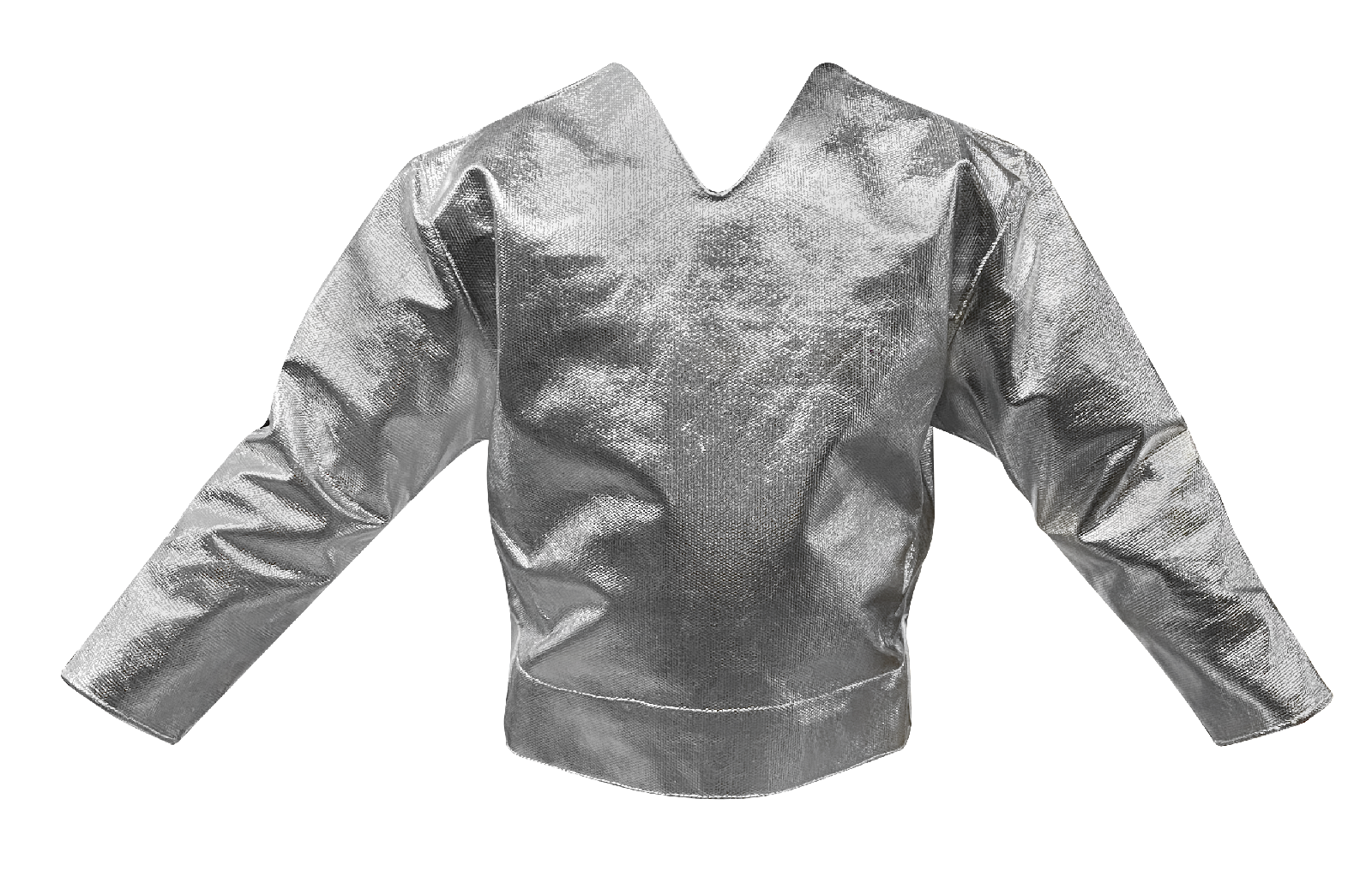 Delantal tipo Cirujano en Tela Aluminizada de aproximación contra altas temperaturas. Brinda protección contra el calor radiante, chispas y los peligros de salpicaduras de metal fundido.
