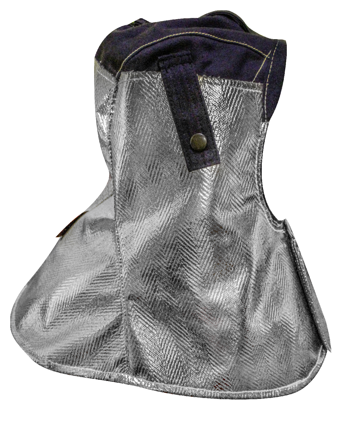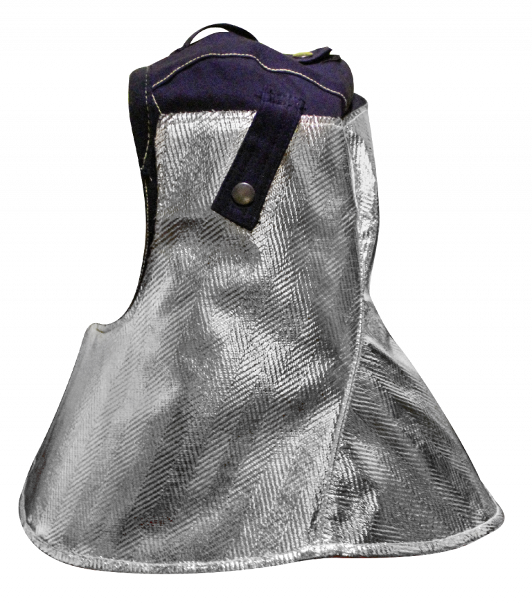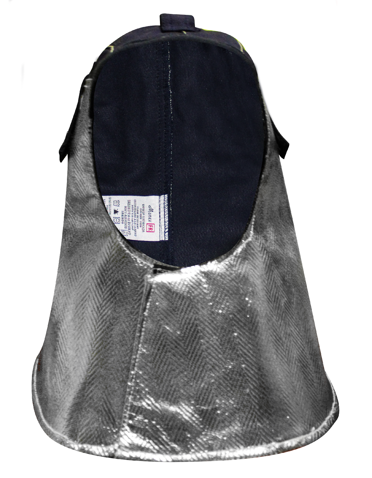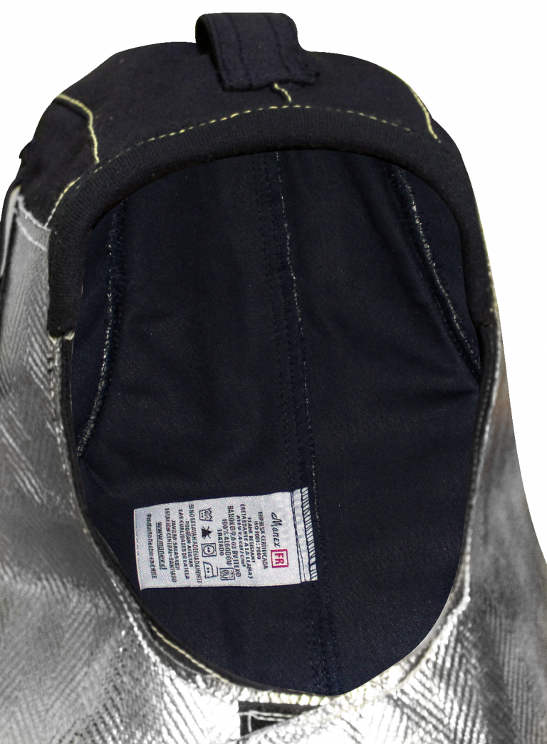 Gorro tipo cuello monja en tela 100% algodón con tratamiento retardante a la llama con refuerzo en tela Aluminizada Ampliado. Brinda protección contra el calor radiante, chispas y los peligros de salpicaduras de metal fundido.