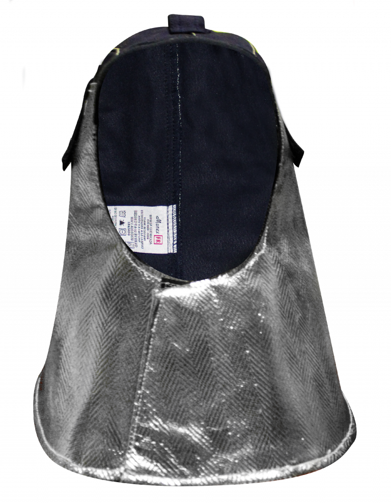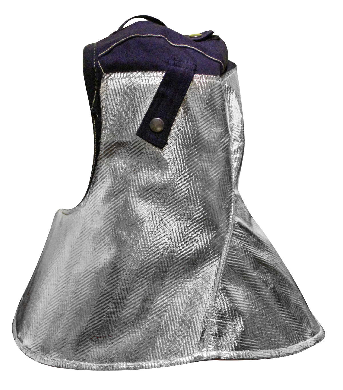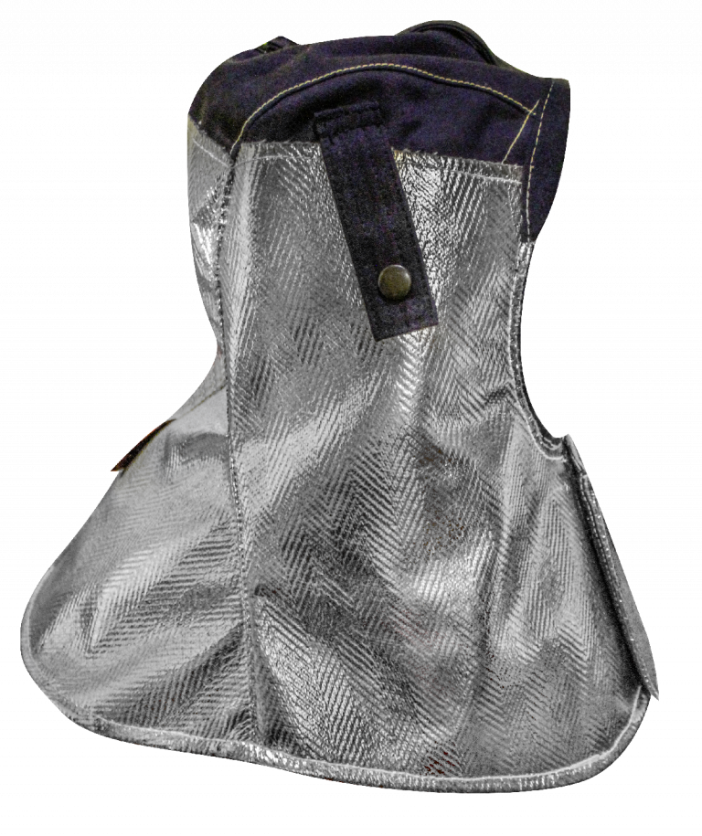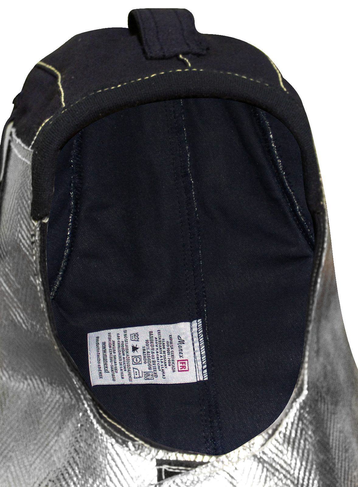 Gorro tipo cuello monja en tela 100% algodón con tratamiento retardante a la llama con refuerzo en tela Aluminizada Ampliado. Brinda protección contra el calor radiante, chispas y los peligros de salpicaduras de metal fundido.