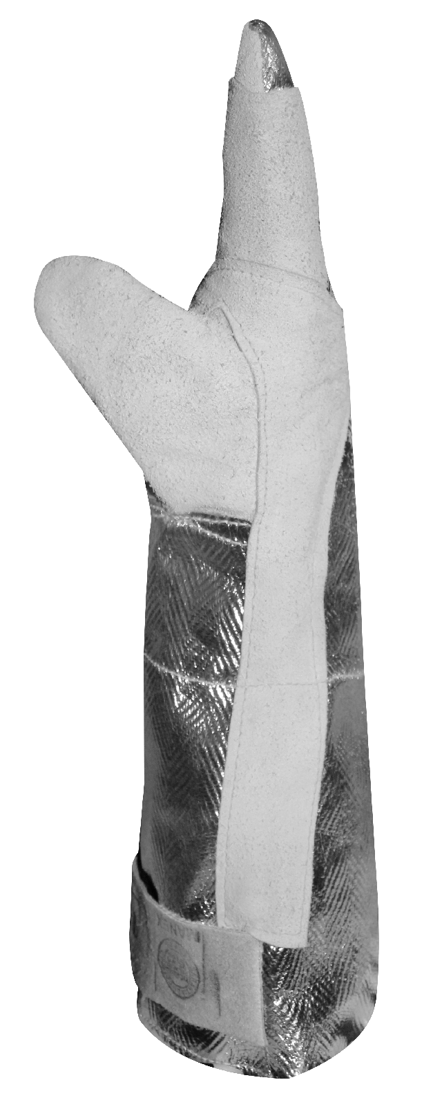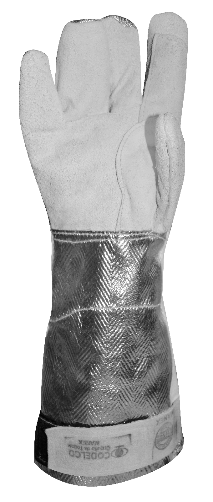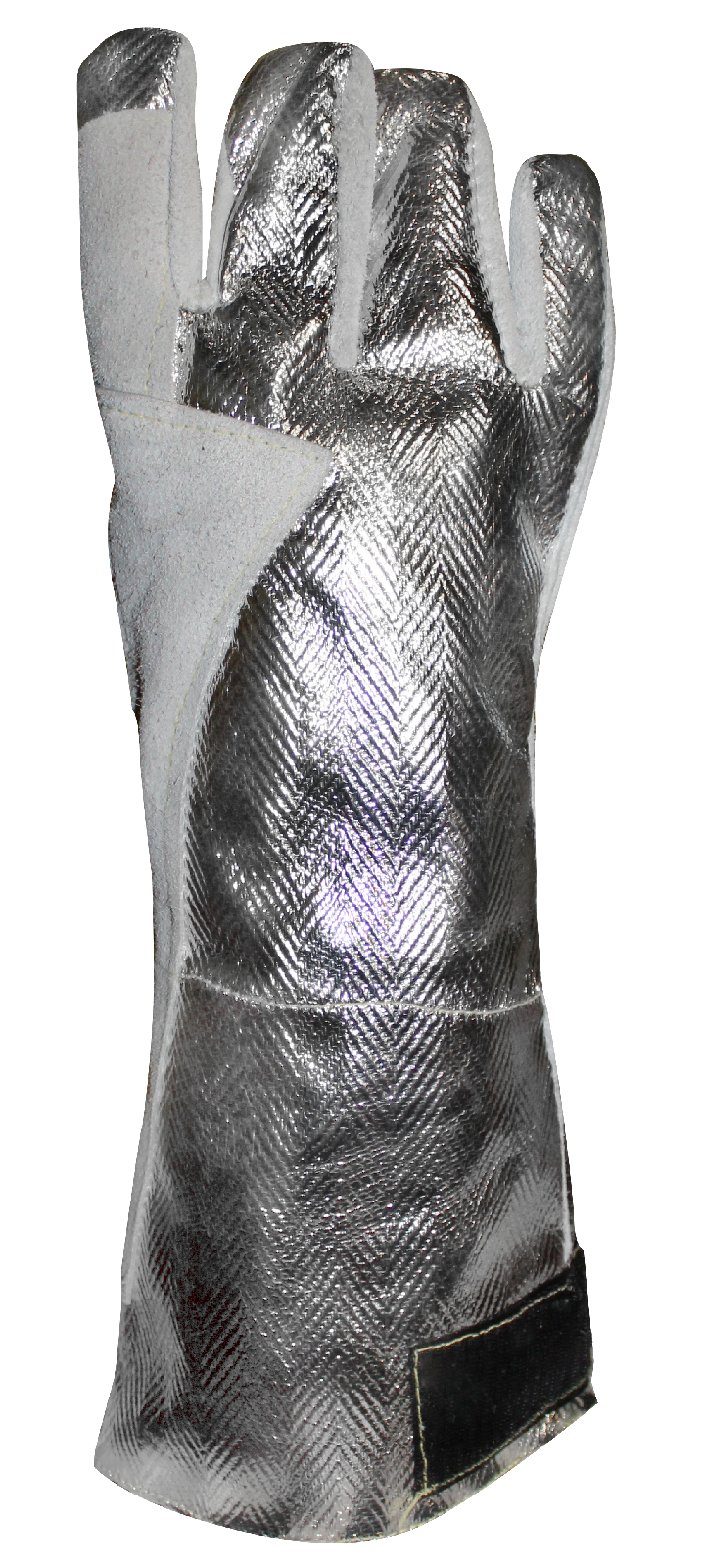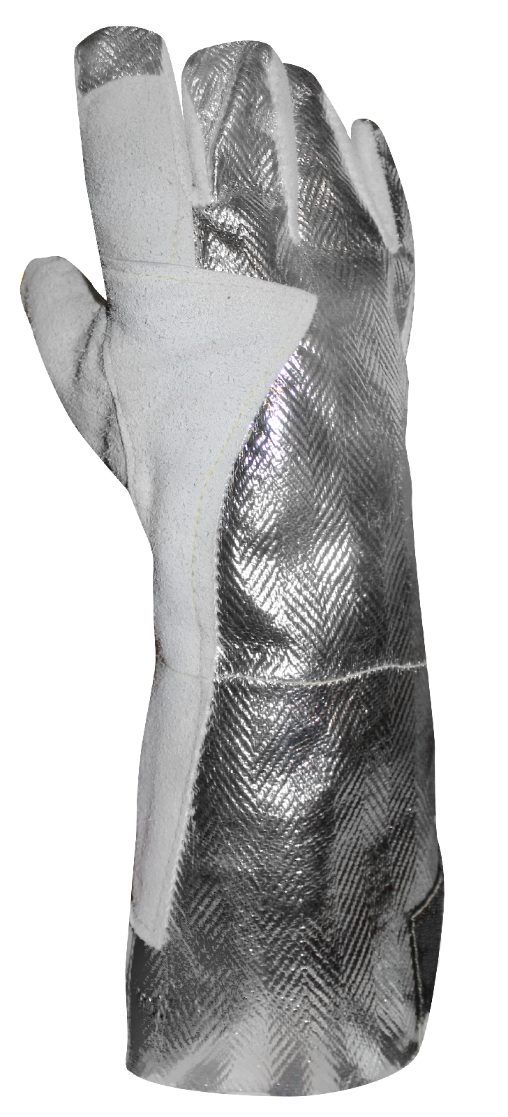 Guante mixto en Tela Aluminizada de aproximación contra altas temperaturas. Brinda protección contra el calor radiante, chispas y los peligros de salpicaduras de metal fundido.