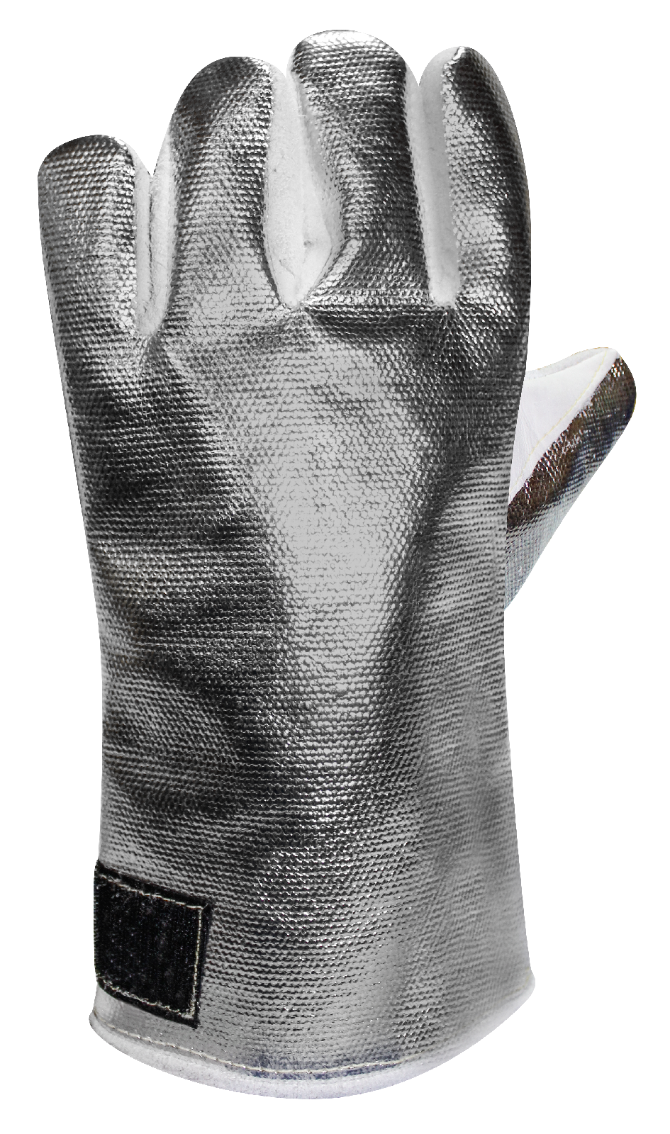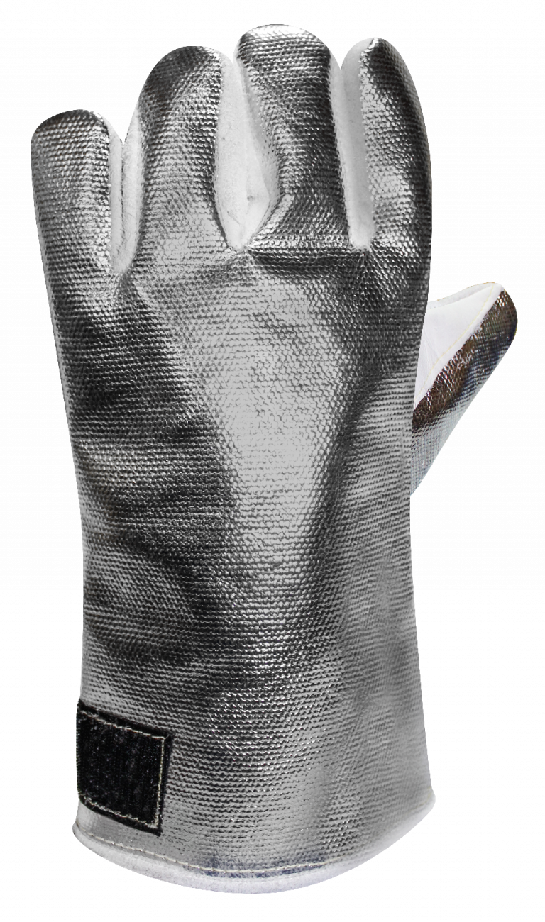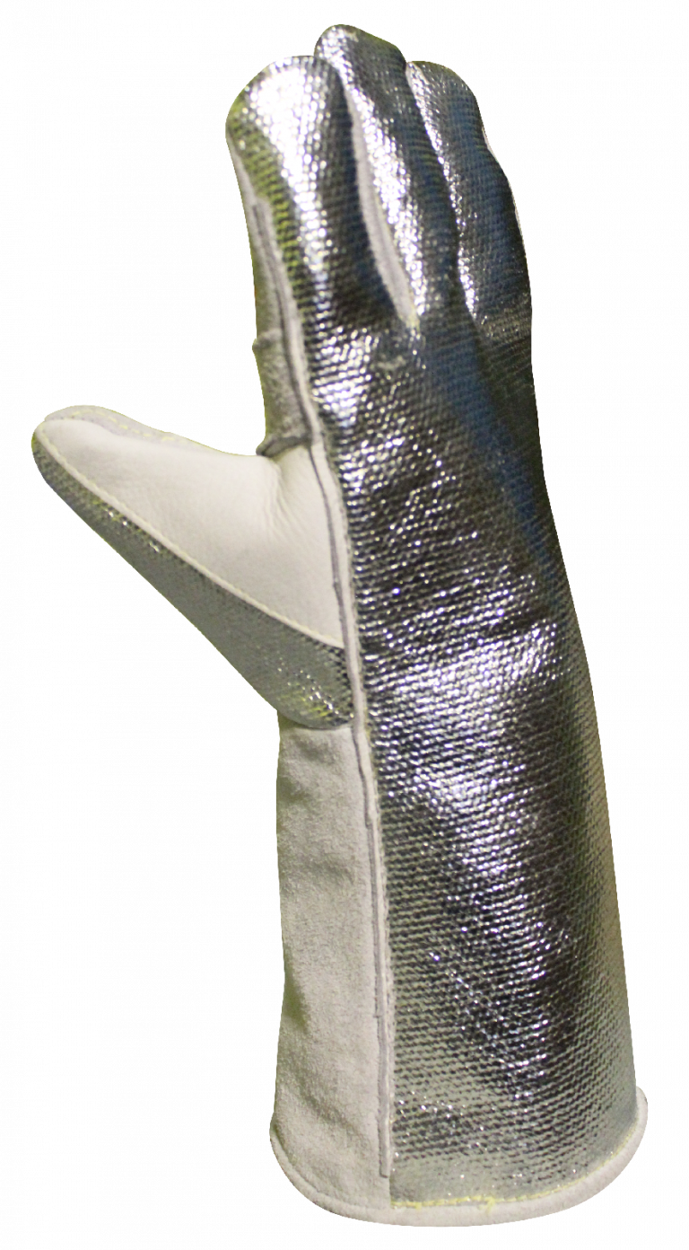 Guante mixto en Tela Aluminizada de aproximación contra altas temperaturas. Brinda protección contra el calor radiante, chispas y los peligros de salpicaduras de metal fundido.