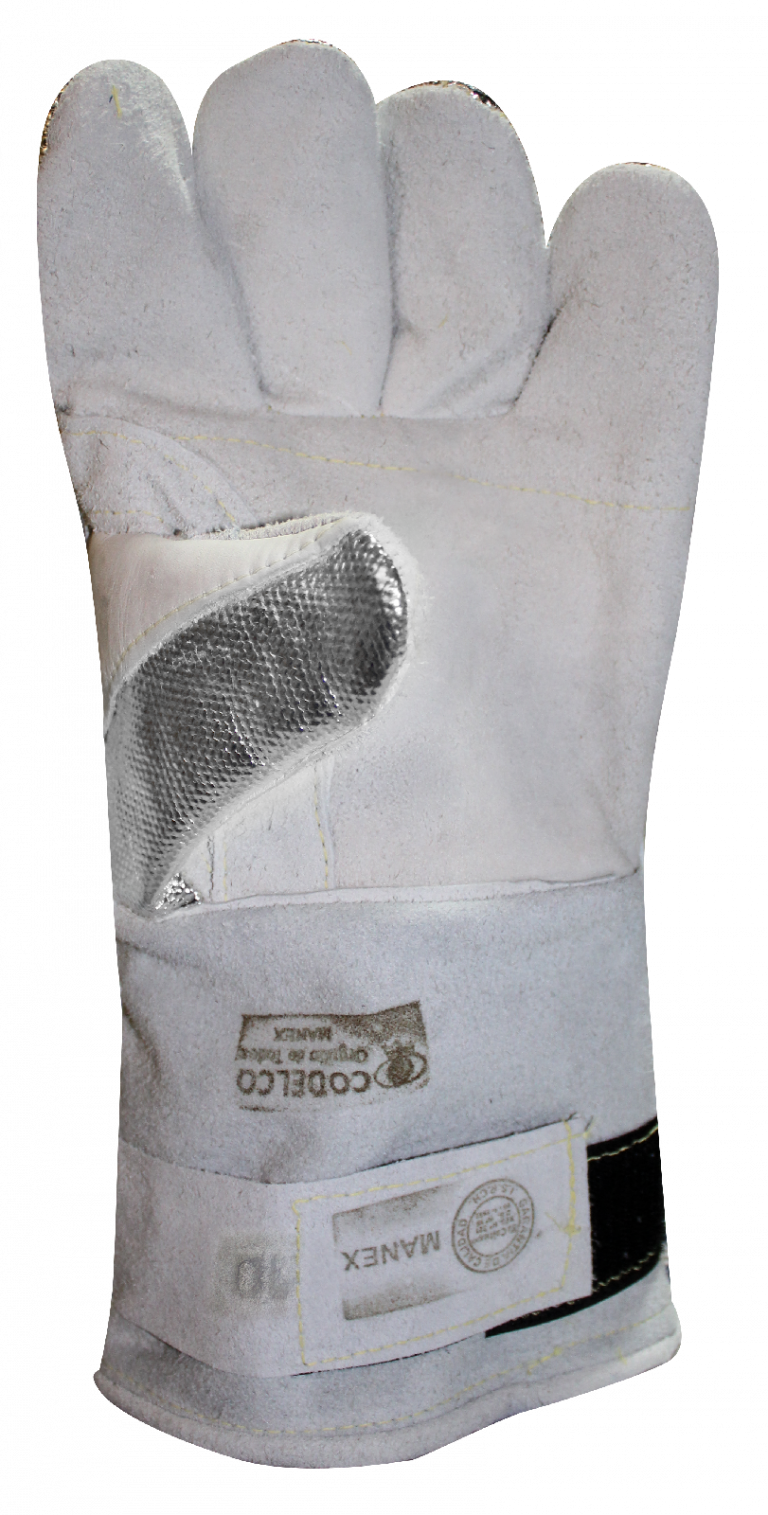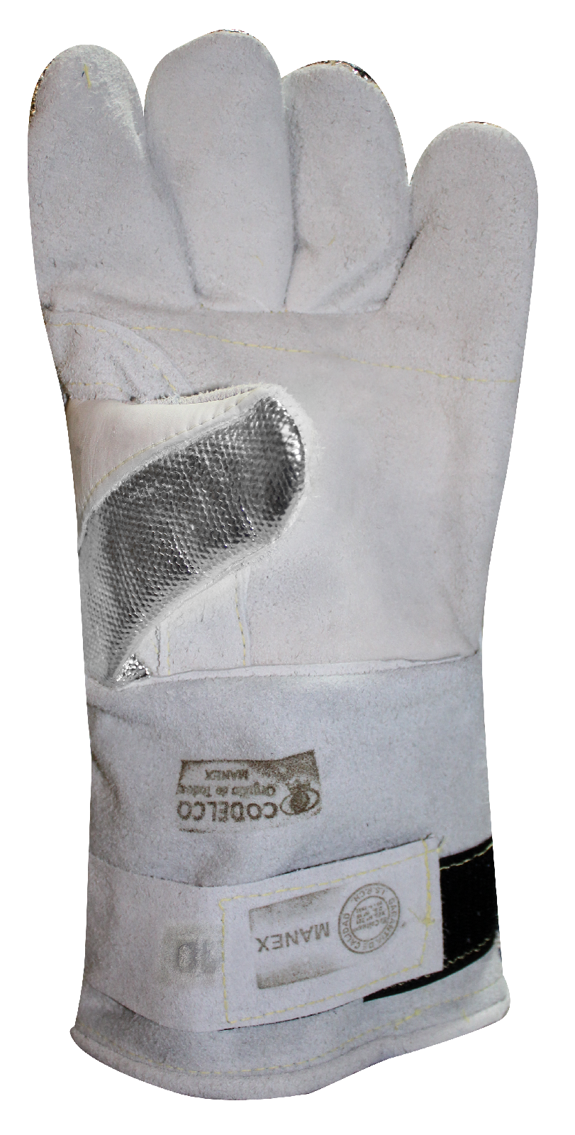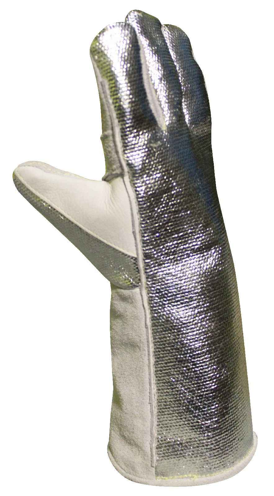 Guante mixto en Tela Aluminizada de aproximación contra altas temperaturas. Brinda protección contra el calor radiante, chispas y los peligros de salpicaduras de metal fundido.