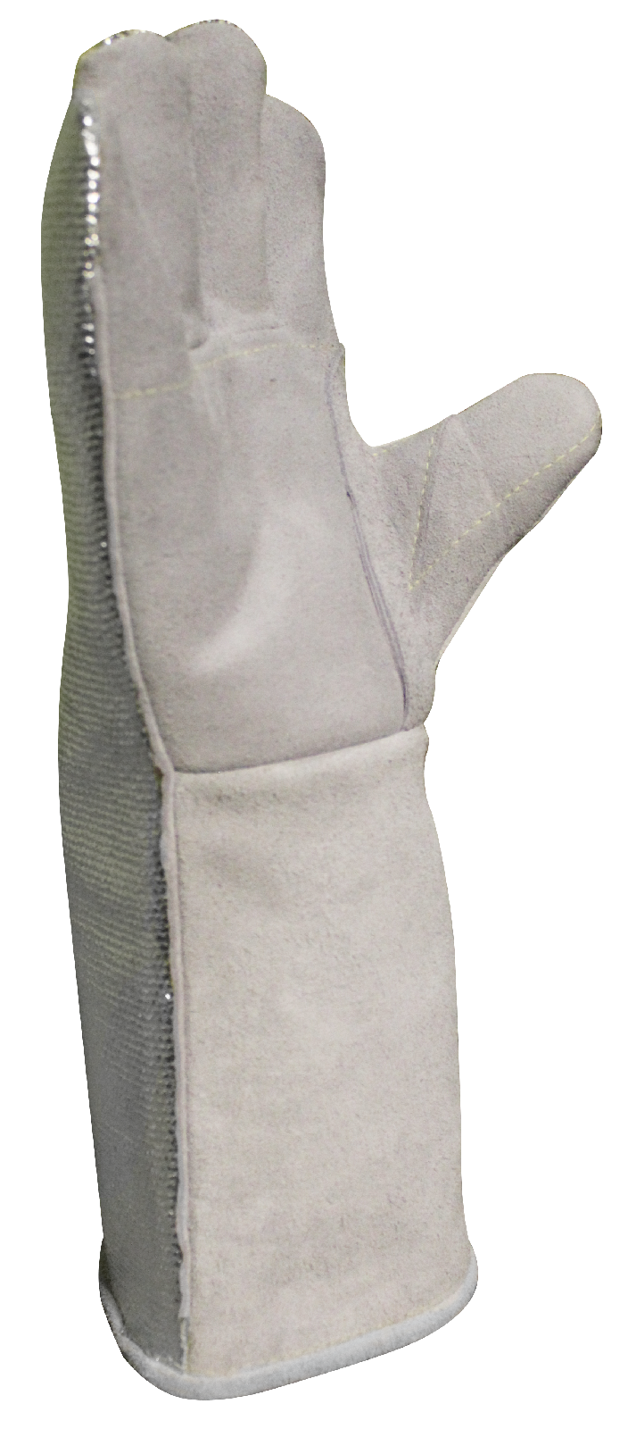 Guante mixto en Tela Aluminizada de aproximación contra altas temperaturas. Brinda protección contra el calor radiante, chispas y los peligros de salpicaduras de metal fundido.