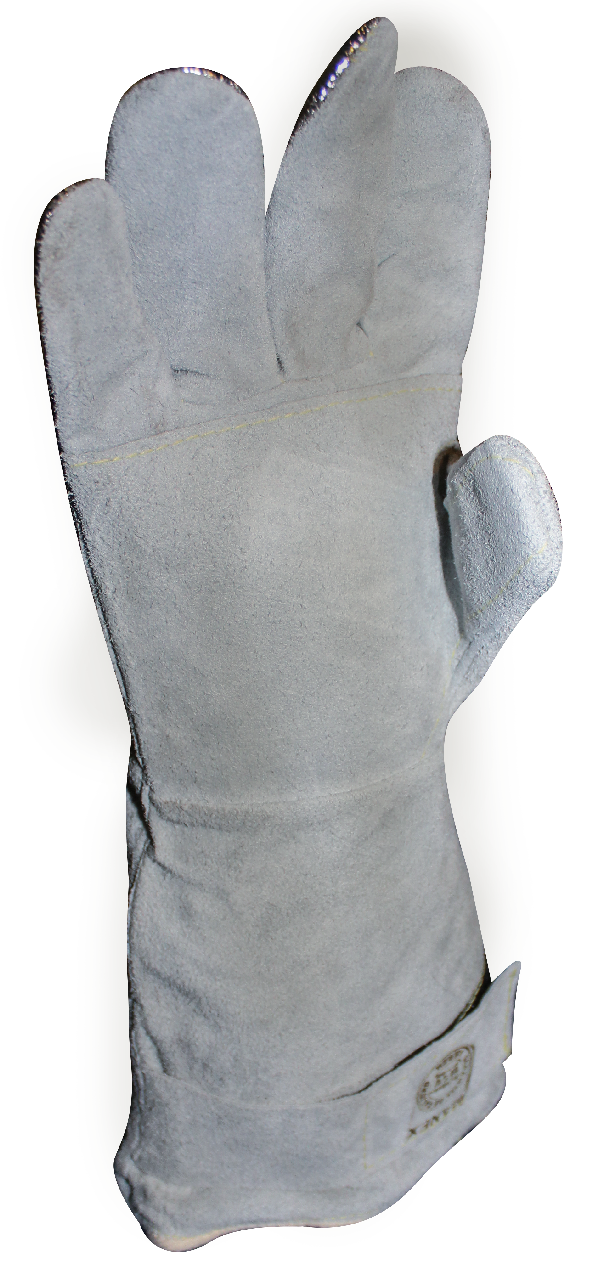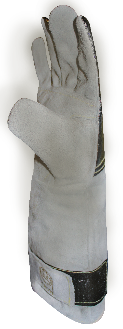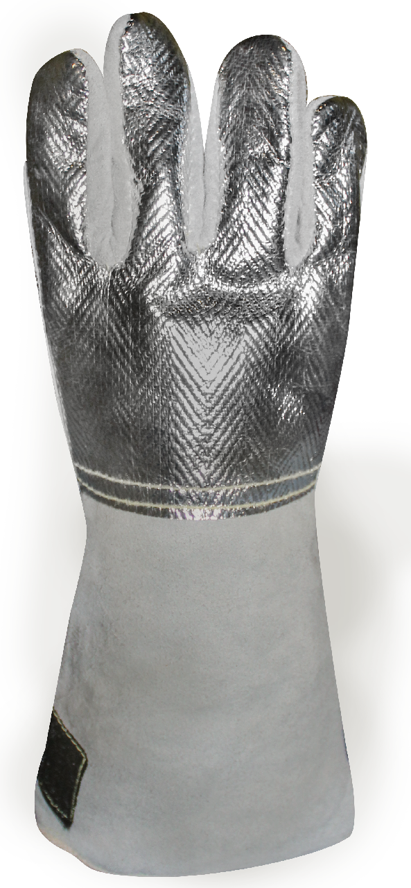 Guante de Soldador desarrollado para proporcionar protección en labores de fundición como colada continua o los cuchareros. La protección aluminizada protege al guante de la radiación calórica y posibles salpicaduras de metal fundido.