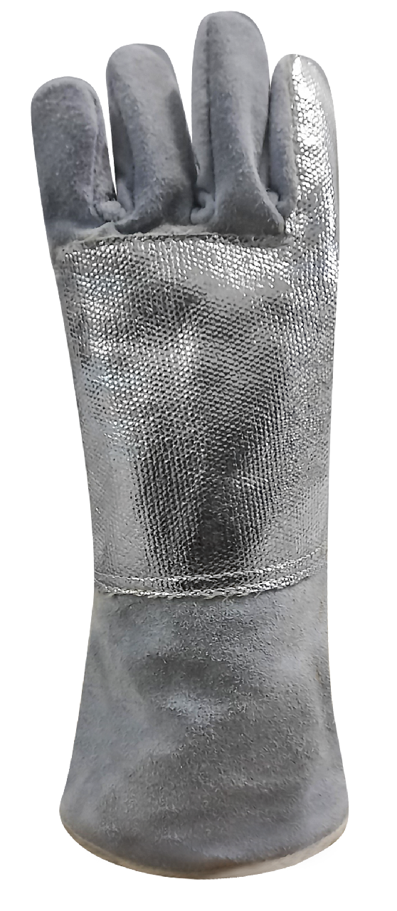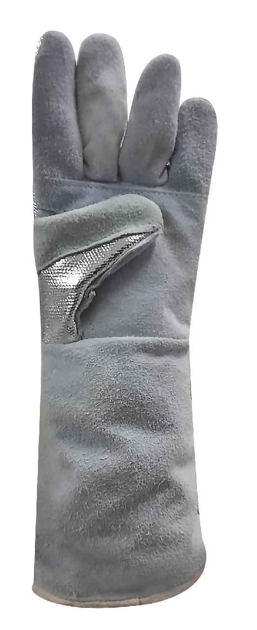 Guante de Soldador desarrollado para proporcionar protección en labores intensiva de soldadura. La protección aluminizada protege al guante de la radiación calórica y posibles salpicaduras de metal fundido.