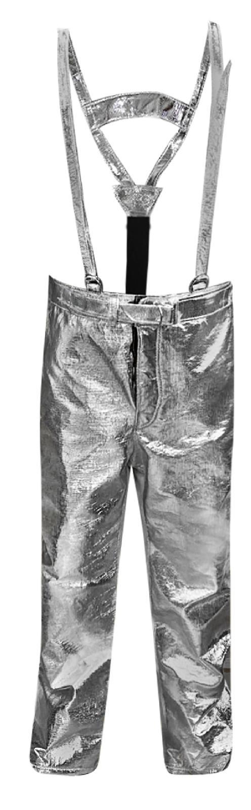 Pantalón mixto en tela aluminizada con cuero flor de aproximación contra altas temperaturas. Brinda protección contra el calor radiante, chispas y los peligros de salpicaduras de metal fundido.