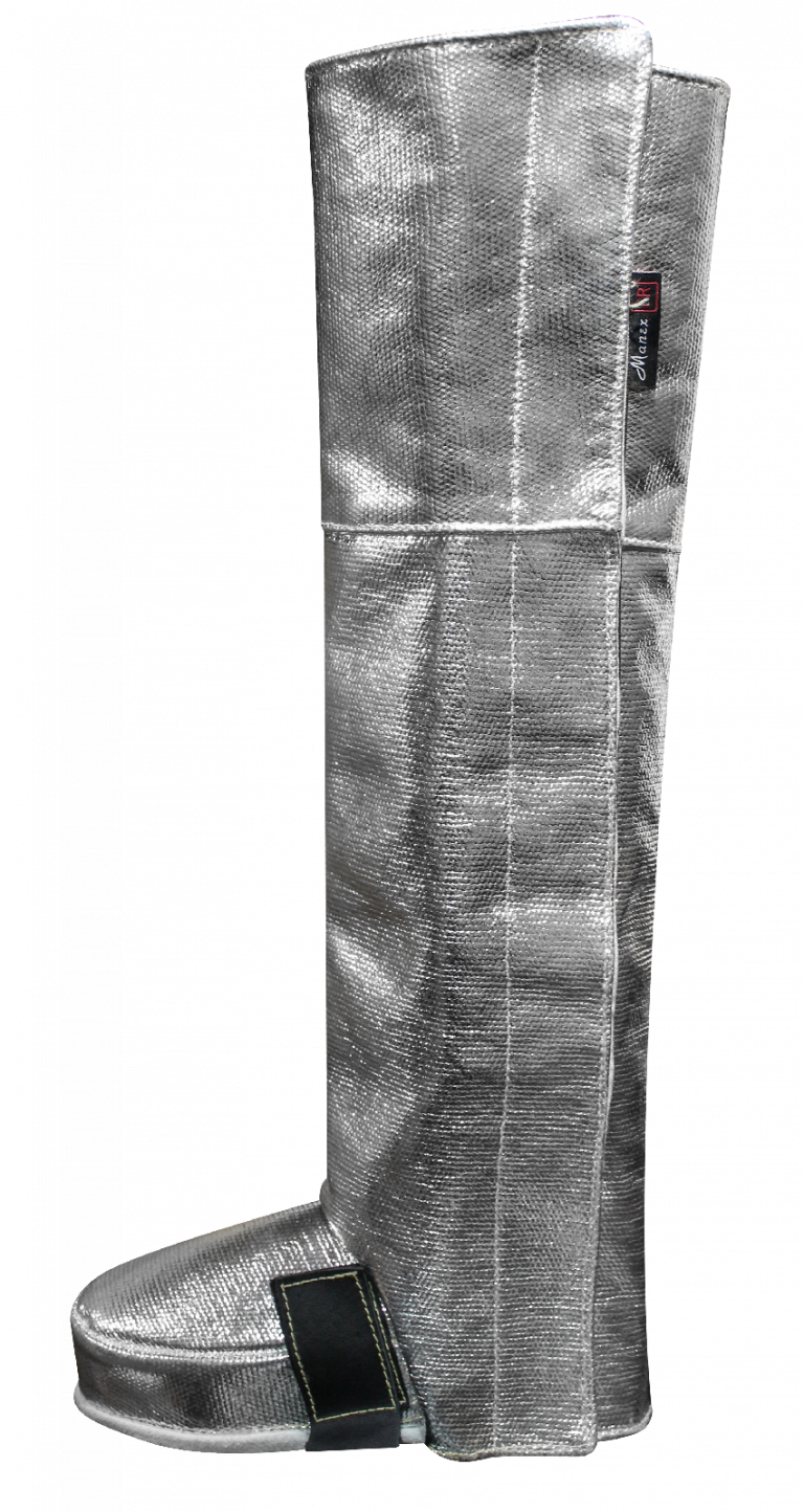 Polaina en Tela Aluminizada de aproximación contra altas temperaturas. Brinda protección contra el calor radiante, chispas y los peligros de salpicaduras de metal fundido.